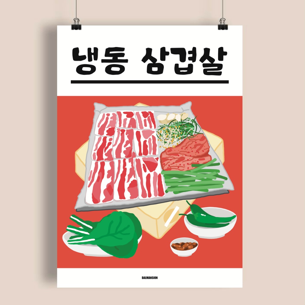 P48 냉동삼겹살 고기 냉삼 맛집 식당 포스터 그림 액자 디자인 개업선물 한식 한돈 돼지