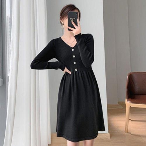 [오너클랜]인기상품 블랙 미디 골지 버튼 니트 원피스 하객룩 롱 스커트 [WFLHTZB_260227]
