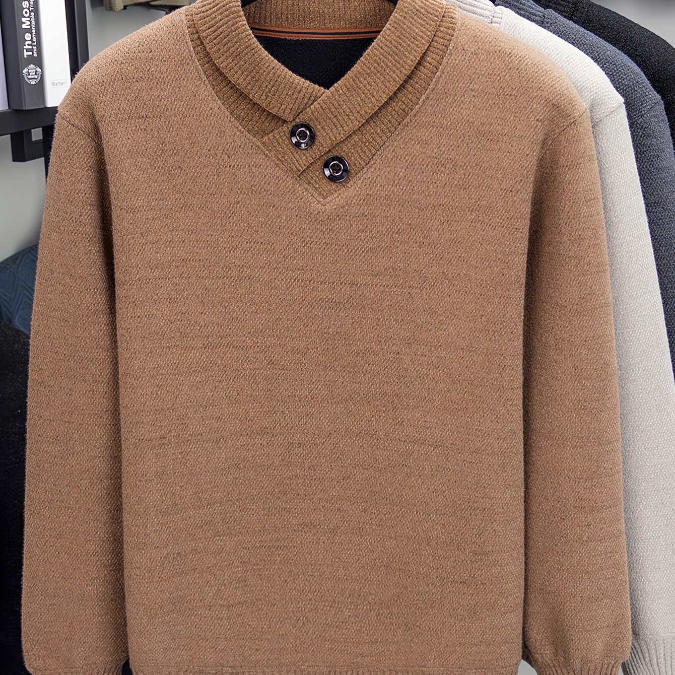 TEMU 신상 가을/겨울 고급 남성용 안감 처리된 안감 보온성 강화된 루즈핏 니트 브이넥 스웨터, 남성용 니트 풀오버 SY25115