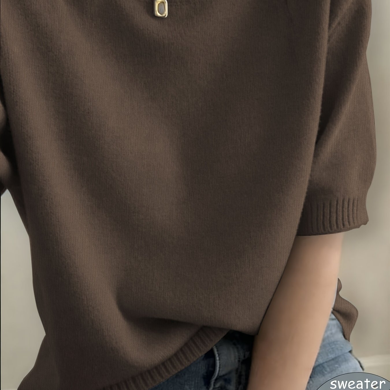 TEMU ELEGANTSUT 여성용 우아한 솔리드 컬러 반팔 스웨터 - 라운드넥 블라우스, 미디엄 스트레치 겨울 탑, 가을/겨울용 솔리드 컬러 반팔 스웨터 블라우스, 캐주얼 & 프로페셔널 웨어, 손세탁 가능 (컬러)