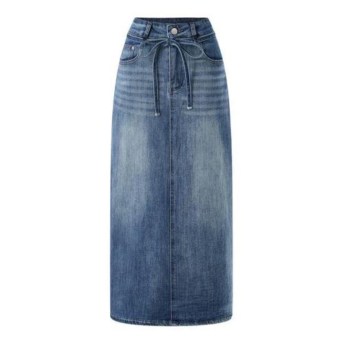 [탱커스]데일리 데님 워싱 트임 끈 세트 롱 스커트 (TY1SK002L0)