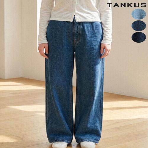 [탱커스]여성 코튼 밴딩 통 와이드 데님 팬츠