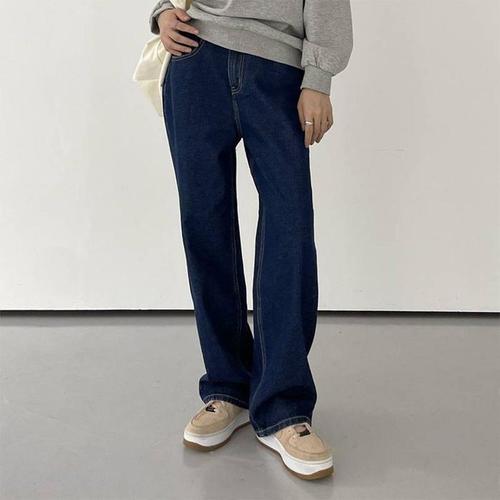 [다잇템]여자 민무늬 통큰 생지 진팬츠 와이드핏 청바지 (11690206A)