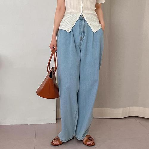 [다잇템]여자 진팬츠 허리밴드 통큰 와이드핏 청바지 (11690223A)
