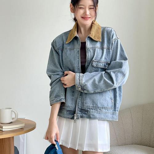 [다잇템]여자 투웨이집업 개강룩 콘트라스트 청자켓 (30222328A)