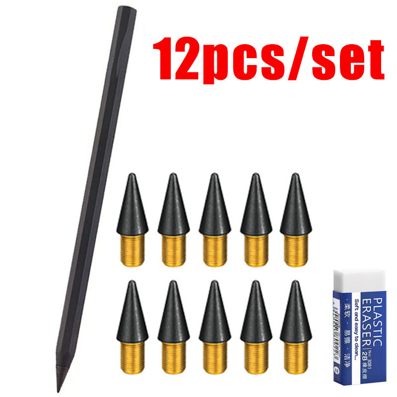 TEMU 무한한 쓰기 가능성을 열어주는 혁신적인 메탈 펜슬: 스케치, 페인팅, 사무용으로 활용 가능한 마법의 펜. 펜 1개, 교체 가능한 팁 10개, 지우개 1개 포함