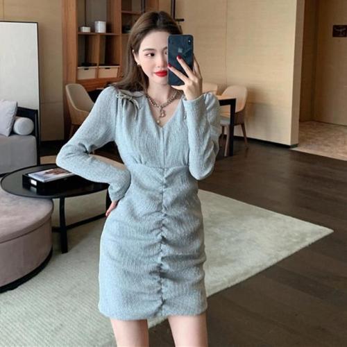 [다잇템]여자 잔주름 슬림핏 트윙클 V넥 SS 원피스_3 (30099213A)