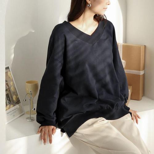 [다잇템]여자 브이넥맨투맨 양트임 민무늬 티셔츠 (29270447A)