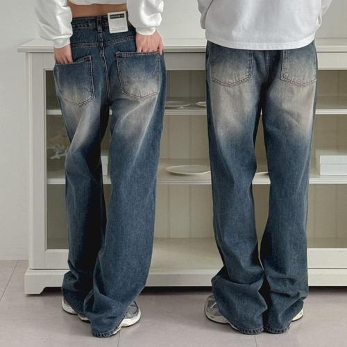 남여공용 패치 워싱 와이드 데님 팬츠 UJ-JEA-8018