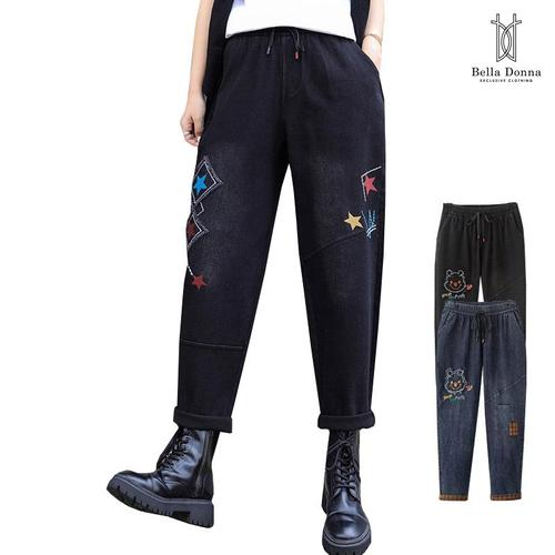 벨라도나 여성 데일리 드롭핏 스트링 밴딩청바지 데님팬츠 자수패치 사계절용 Bon-2677