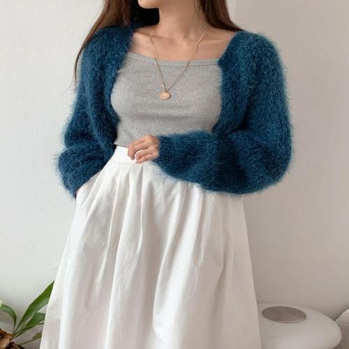 바나나2 크롭기장 따뜻한 여성 러블리 부클 퍼 가디건 4color