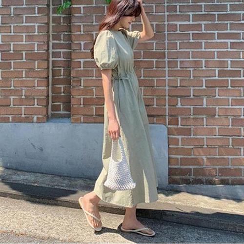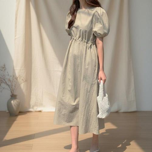 [옷자락] 여성 여름 캐주얼 퍼프슬리브 롱드레스