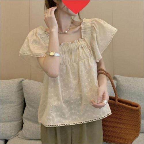 [오너클랜]인기상품 여성 반팔 펀칭 레이스 퍼프 블라우스 데일리룩 티셔츠 [WFLLSUH_260305]