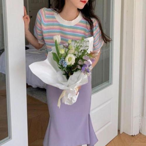 [오너클랜]인기상품 페미닌 무드 퍼프소매 사랑스러운 패턴 반팔 니트 [WFLLRR2_260305]
