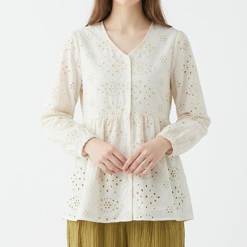 [주식회사 브이와이][JHQRKYR8_4B]여자 여리 펀칭블라우스 루즈핏 블라우스 (24021437A)