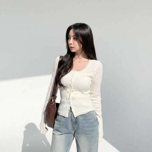 [미라클세븐]여성 슬림핏 유넥 펀칭 디자인 데일리 니트 가디건