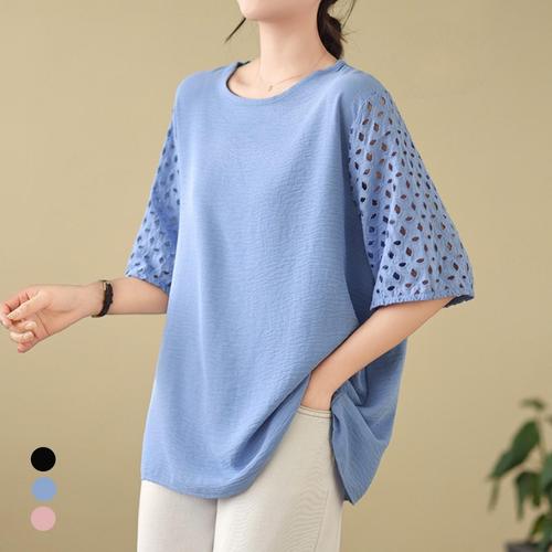 여자블라우스 펀칭 자수 여성 반팔 여름 블라우스 데이트룩 휴가룩