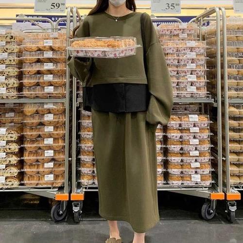 솔저스여성 페이크 투피스 봄가을 원피스 슬림핏 캐주얼 롱스커트 OPH3