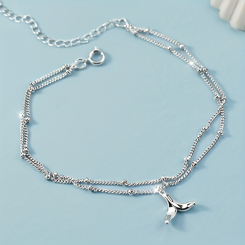 TEMU 여성용 더블 레이어 체인 인어 꼬리 발찌, 데일리 착용, 파티, 선물용