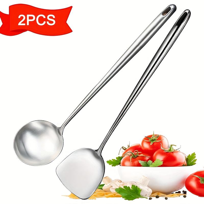 TEMU 1/2개 헤비듀티 상업용 & 가정용 스테인리스 스틸 롱핸들 스패츌러 세트 - 멀티 프라이팬, 핫팟, 계란 뒤집기 & 식기세척기 안전 201 등급 주방용품, 레스토랑, 가정, 주방에 적합