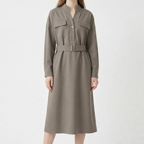 [스타일리쉬바이피클]투포켓 셔츠 벨트 롱 원피스