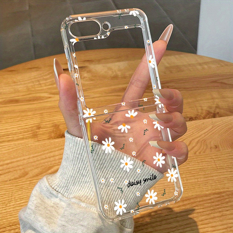 TEMU 꽃무늬 투명 휴대폰 케이스 - 삼성 갤럭시 Z 플립 7/6/5/4/3/5G 및 Z 폴드 7/6/5/4/3 호환, 충격방지 접이식 소프트 커버, 보호 케이스