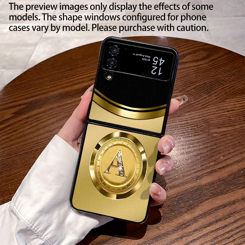 TEMU 폰케이스: 골든 레터 A 클로즈업 패턴 디자인, 고급스러운 미학, 실용적인 합성 가죽 케이스. 삼성 갤럭시 Z 플립 3, Z 플립 4, Z 플립 5, Z 플립 6, Z 폴드 2, Z 폴드 3, Z 폴드 4, Z 폴드 5, Z 폴드 6 호환. 삼성 전용 폰케이스, 얼룩 방지, 패셔너블, 트렌디
