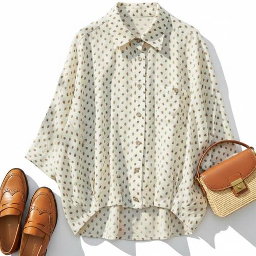 [미라클세븐]여성 루즈핏 미니패턴 폴로카라 셔츠 블라우스