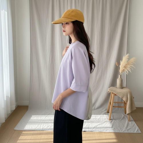 [옷자락] 여성 래글런 반팔티 언발넥 폴리혼방