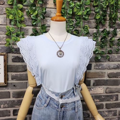 퐁당 / 양 프릴 펀칭 민소매 티셔츠