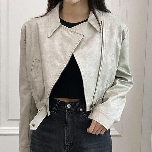 이상한 스타일의 아메리칸 스트릿 스타일 스파이시 걸 긴팔 PU 가죽 재킷 여성용 다용도 오토바이 탑 숏 아우터웨어