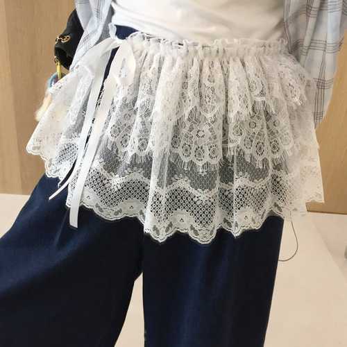 퓨어 시스루 펀칭 레이스 샤 허리밴딩 레이어드 캉캉 랩 미니스커트