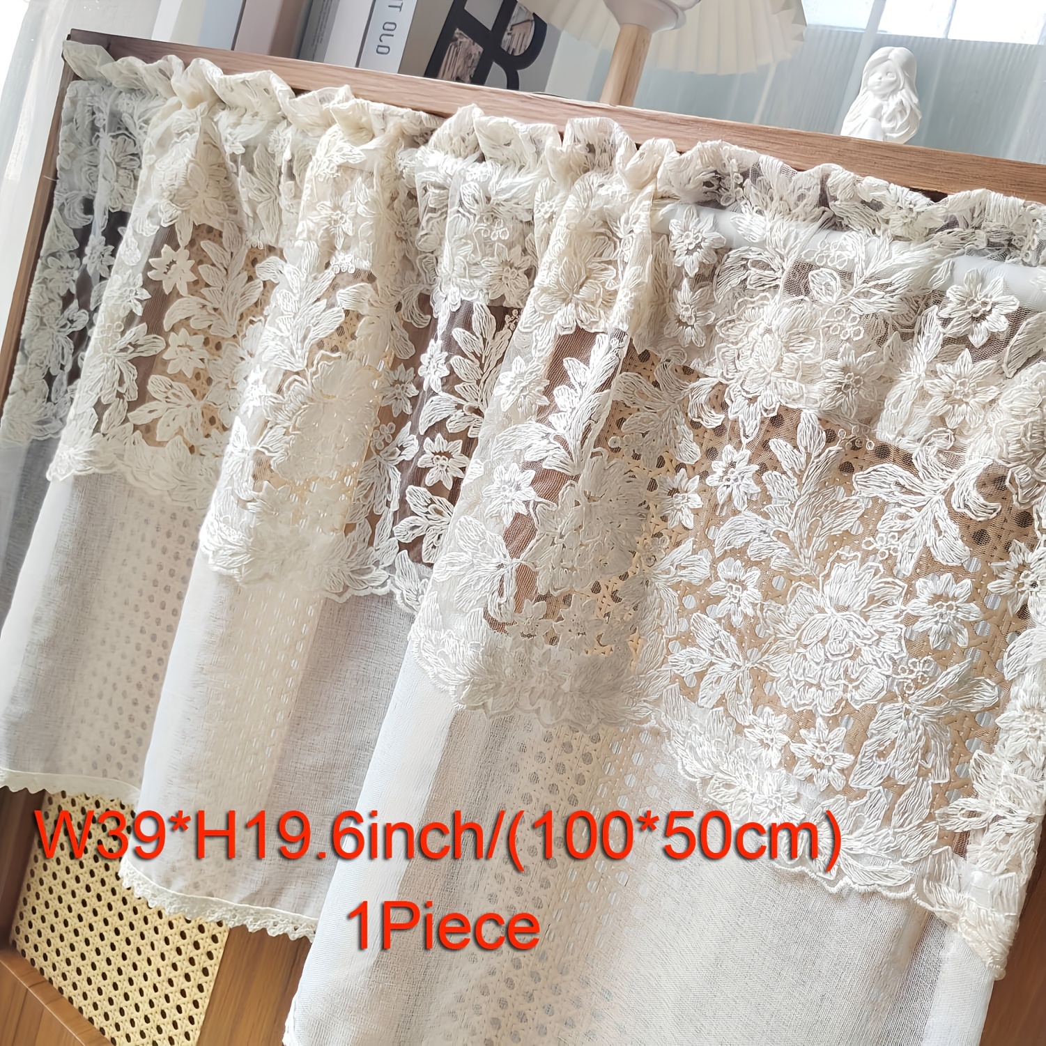 TEMU 1개, 프랑스 로맨틱한 목가적인 꽃 자수 작은 커튼, 막대 포켓, 거실, 침실, 주방, 농가, 집 장식에 적합