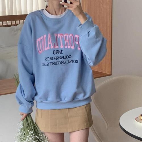 EAMT 여성 프린팅 맨투맨 가을 빈티지 긴팔 상의 캐주얼 풀오버 YJ3