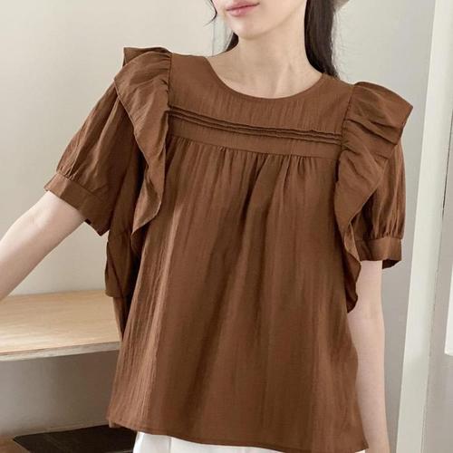 비침 없는 원단, 세련된 프릴반팔블라우스로 자신감 있는 스타일을 완성하세요.