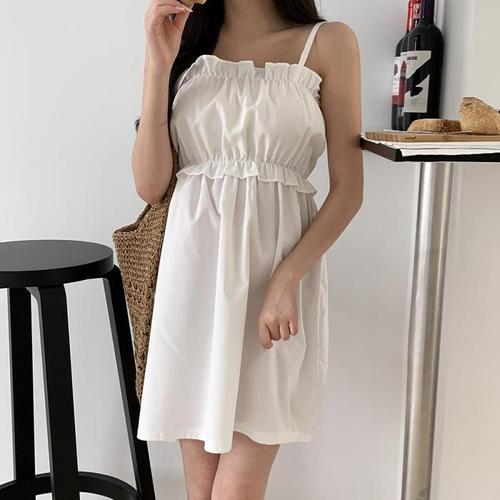 여자 데일리 내추럴 루즈핏 프릴 스트링 민소매 원피스