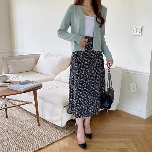 수스 HC04 플라워 패턴 플레어스커트 S252BSK5Z1