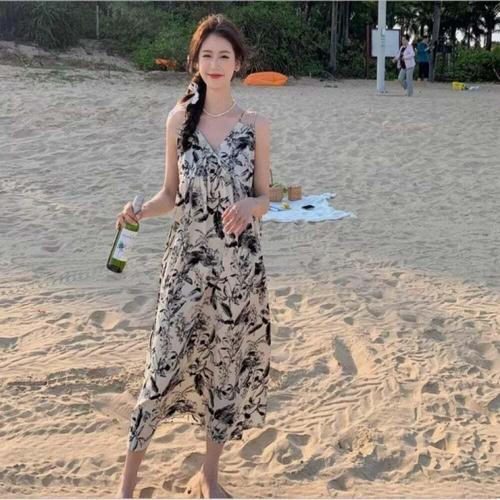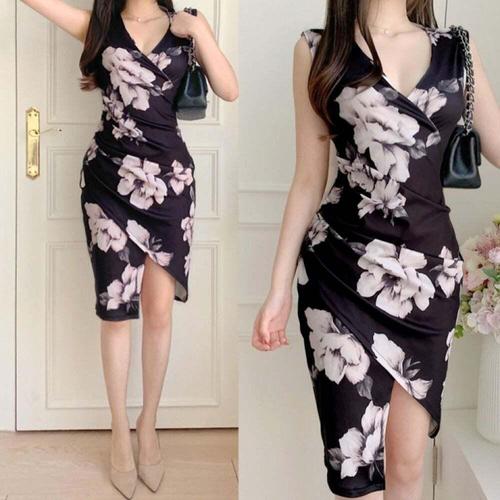 [오너클랜]인기상품 바캉스용 슬림핏 V넥 플로럴 나시 미디 원피스 휴양지룩 [WFLLKCM_260305]