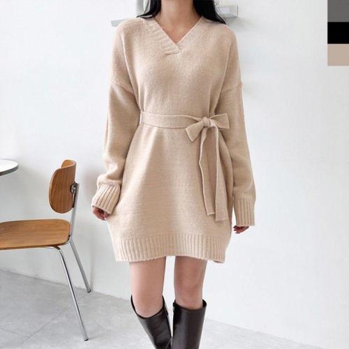 [오너클랜]인기상품 여성 브이넥 니트 원피스 스트랩 장식 데일리룩 슬림핏 [WFLLI28_260305]