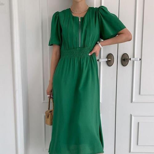 [다잇템]여자 플리츠 잔주름 하프 오픈 포인트 원피스 (10418914A)