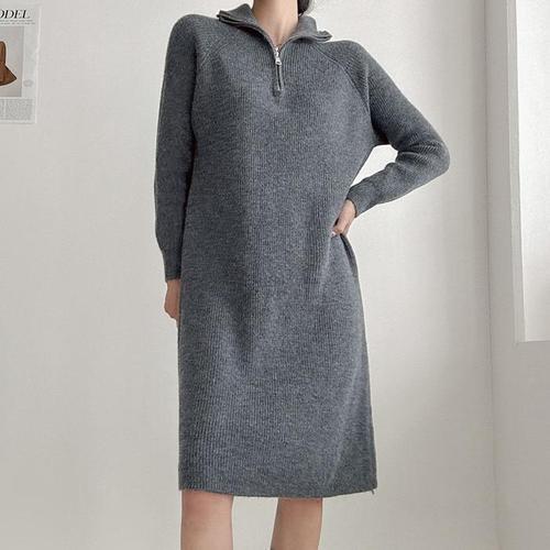 [다잇템]여자 하프집업 중간 골지니트 래글런 원피스_3 (30099247A)