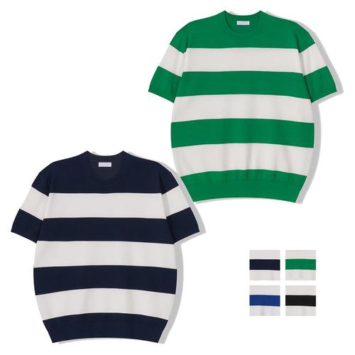 남자 워셔블 라운드넥 단가라 반팔 니트티 GN-KNH-Q014-네이비