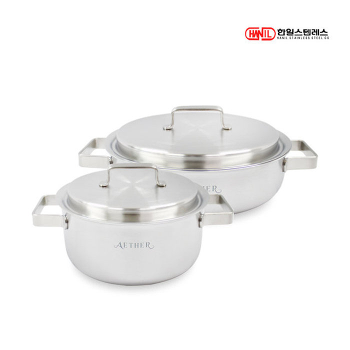 한일스텐레스 한일STS 에테르 통5중 스텐레스304 IH 인덕션가능 무연마제 냄비세트 2종A(편18+양20)