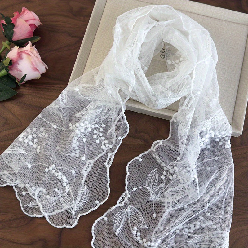 TEMU 한국 스타일 예술적인 빈티지 단색 레이스 자수 여성용 스카프, 활용도 높은 장식용 넥 스카프, 다기능 긴 헤드스카프, 시폰 스카프, 여성 스카프
