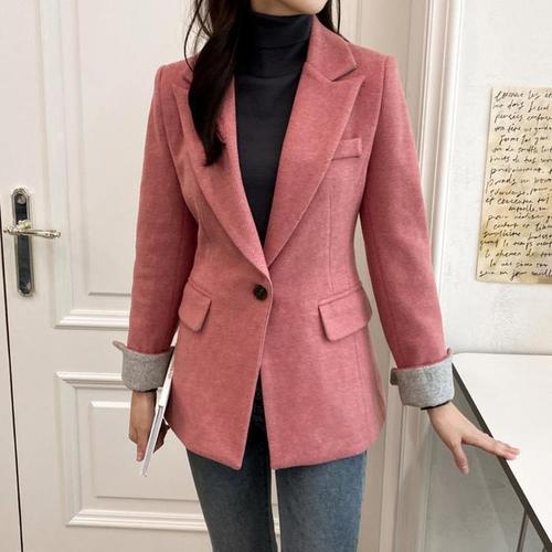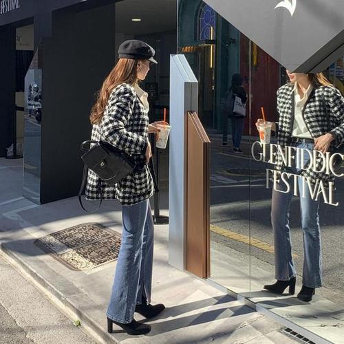 여성 가을 겨울 고급 헤링본 A라인 모직 자켓 캐주얼 정장 출근룩 졸업식 슬림핏 베이식 재킷