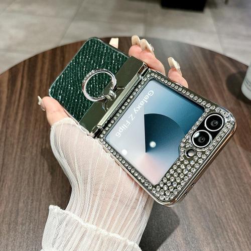 갤럭시Z플립7FE/Z플립6 케이스 링 가죽 큐빅 플립 케이스
