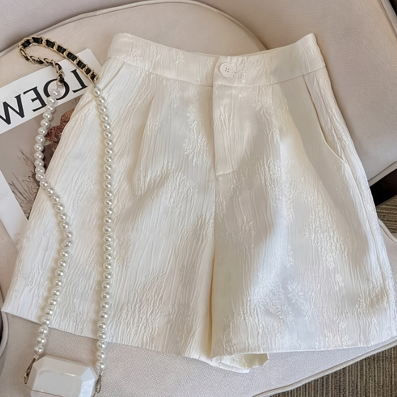 TEMU 타겟 ZD1113071 여성용 럭셔리 캐주얼 플로럴 자카드 와이드 레그 반바지