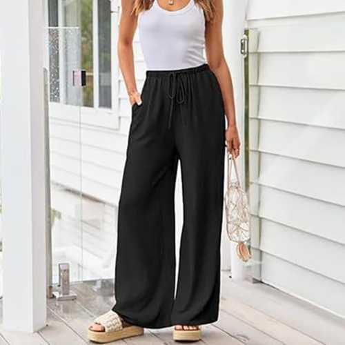 블랑슈 여름 쿨 냉장고 여성 주름 와이드 밴딩 통바지 홈웨어 이지웨어