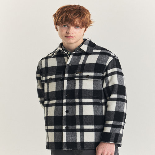 헤지스 남성 화이트 울 체크 셔켓 (HZSH4D578OW)