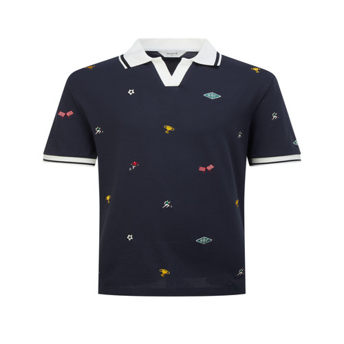 헤지스 남성 네이비 자수장식 면혼방 반팔카라티셔츠 (HZTS6B051N2)